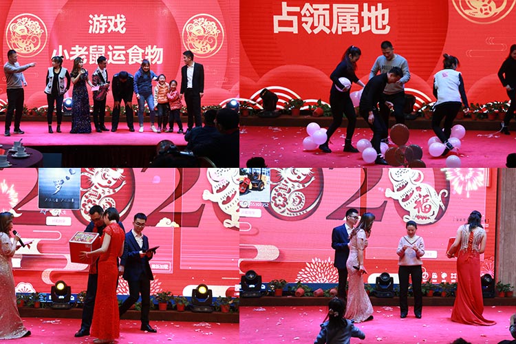 四、游戲、抽取獎(jiǎng)品環(huán)節(jié)展示。年會(huì)當(dāng)然少不了游戲、抽取大獎(jiǎng)環(huán)節(jié)了,精心安排的互動(dòng)游戲,大大地調(diào)動(dòng)了員工們的熱情,臺(tái)下一片歡聲笑語(yǔ),昔日的汗水都化為杯中的美酒,大家舉杯共飲。抽取大獎(jiǎng)是激動(dòng)人心的,看著拿大獎(jiǎng)的同事心中充滿(mǎn)了羨慕。