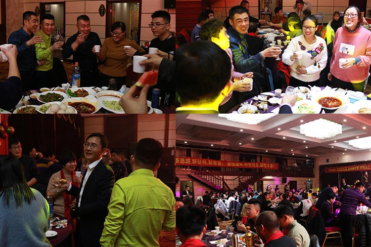 五、開(kāi)餐了。美味的菜肴,歡樂(lè)的笑聲以及觥籌交錯(cuò),大家紛紛向彼此送上美好的新春祝福。每年的這一天,我們都?xì)g聚一堂,共同回味、分享一年的酸甜苦辣,憧憬來(lái)年。