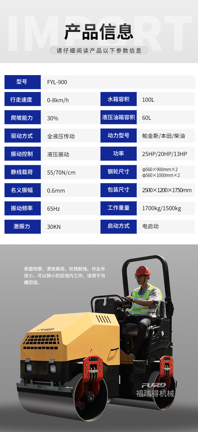 FYL-900 1.7T全液壓振動(dòng)壓路機(jī),小型壓路機(jī)